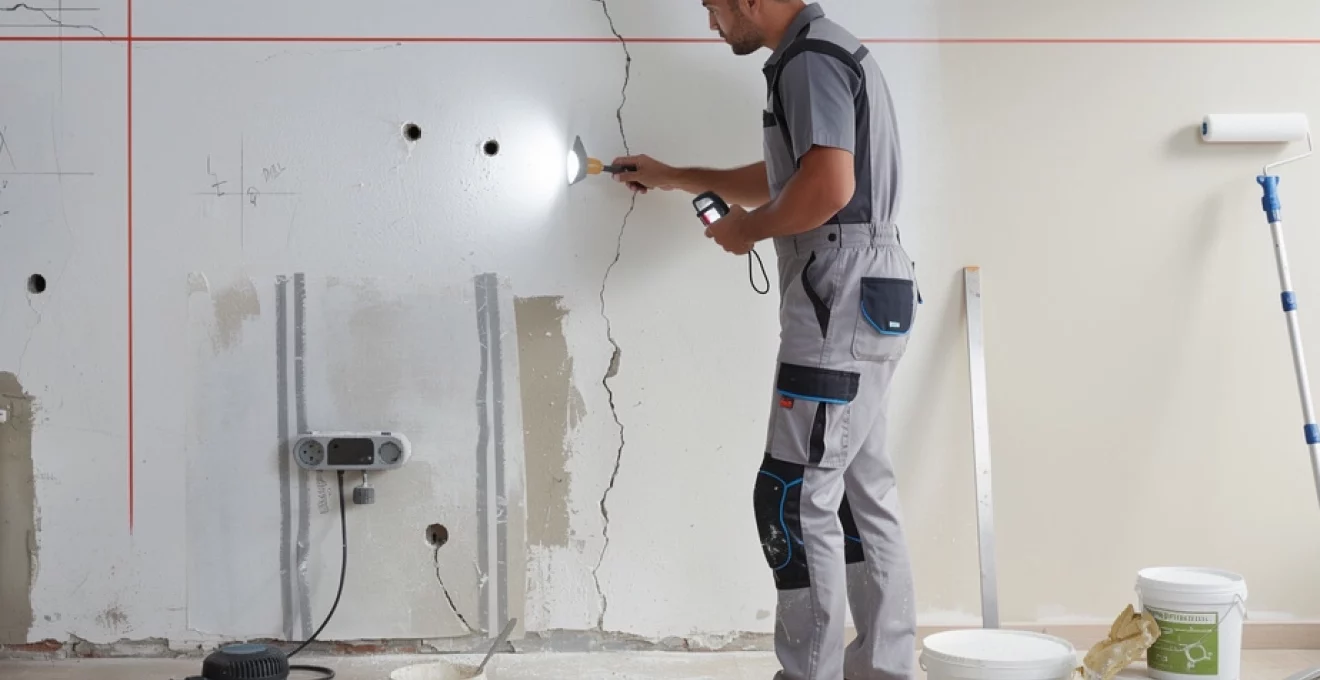 L’inspection visuelle sous éclairage rasant constitue la méthode la plus efficace pour révéler les imperfections. Positionnez une lampe torche à angle faible contre le mur : les ombres projetées mettront en évidence les moindres irrégularités. Les fissures structurelles, généralement plus larges que 2 millimètres et souvent en diagonale, nécessitent une intervention plus profonde qu’un simple rebouchage. Elles peuvent indiquer des problèmes de fondation ou de charpente qui requièrent l’expertise d’un bureau d’études techniques. Les microfissures superficielles, en revanche, résultent principalement des variations thermiques et hygrométriques naturelles du bâtiment.